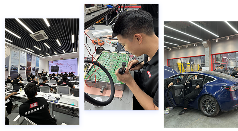 | 实操场地有大量客户特斯拉车辆维修可以更快速掌握所学技术 | ||